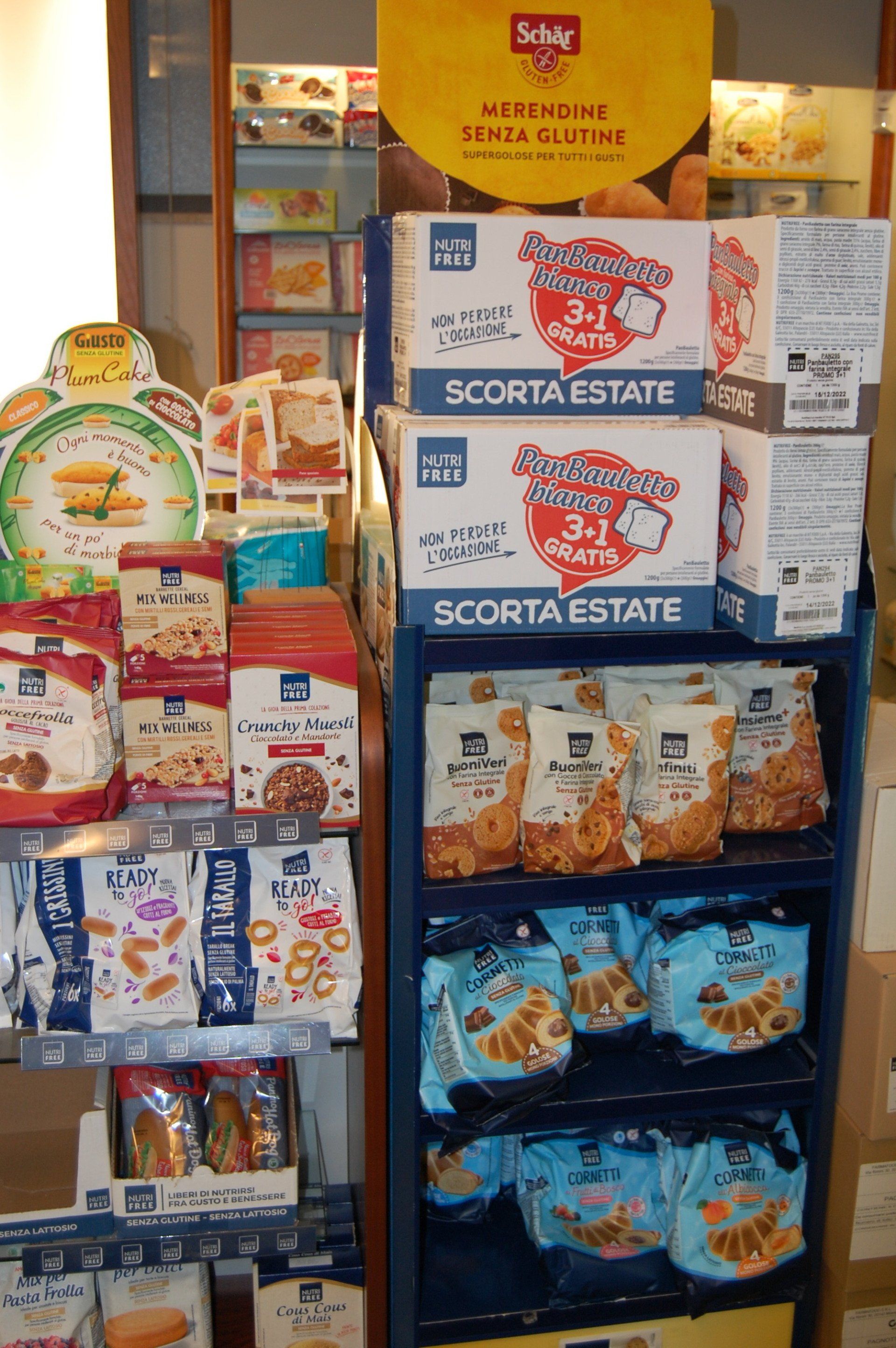 Il reparto di alimenti speciali della Farmacia Ruggieri di Rieti dispone di uno spazio dedicato interamente agli alimenti senza glutine, perfetti per i clienti con celiachia. Pasta, pane, prodotti da forno, pasticceria, prodotti surgelati, bibite senza glutine e tanto altro delle migliori marche del settore. Le confezioni sono mutuabili o senza prescrizione medica.